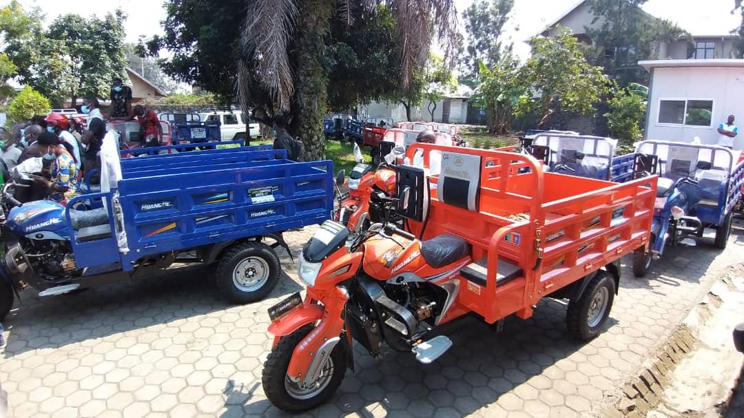 Le Projet de Facilitation du Commerce dans la Région des Grands Lacs (PFCGL) a remis aux petits commerçants transfrontaliers 20 engins roulants « tricycles », ce mercredi 29 juillet 2020, à Goma, dans le but de faciliter et assurer la continuité du commerce transfrontalier pendant cette période où les frontières sont fermées suite à la pandémie du coronavirus.