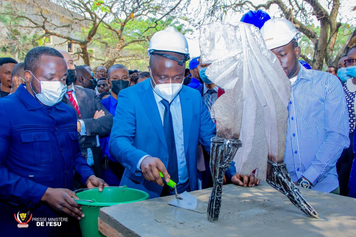 Le ministre de l'Enseignement Supérieur et Universitaire (ESU) a procédé ce lundi 09 août 2021, à la pose de la première pierre de construction des auditoires polyvalents de l'Université de Kinshasa (UNIKIN).