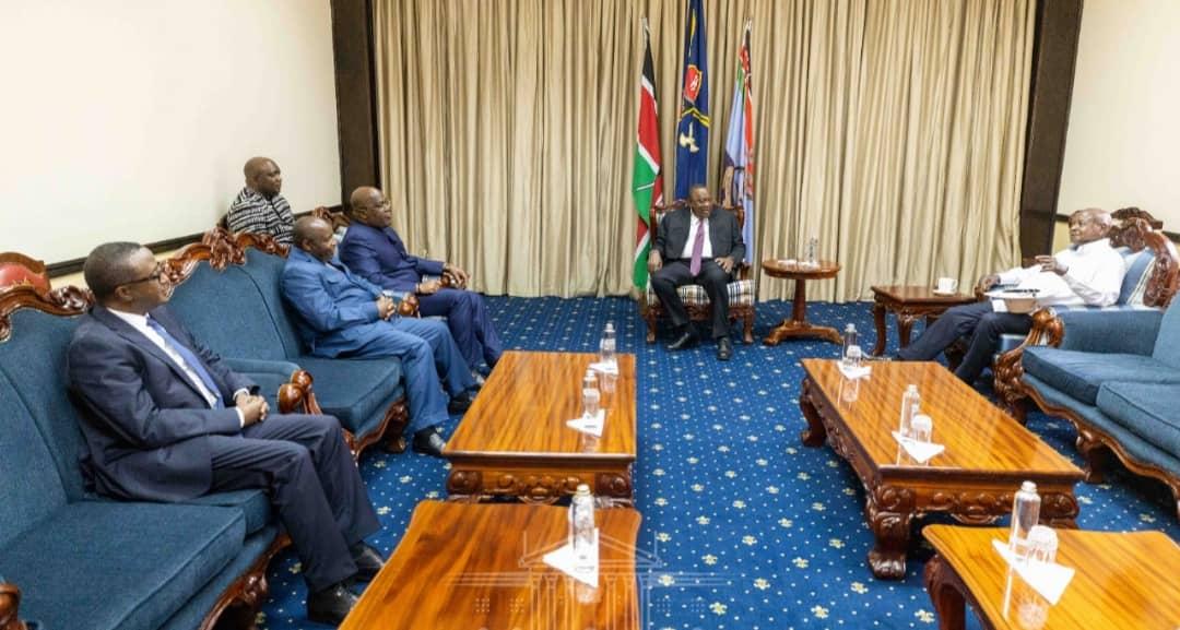 Uhuru Kenyatta, Yoweri Museveni, Evariste Ndayishimiye, Félix Tshisekedi et le ministre Rwandais des Affaires étrangères, représentant Paul Kagame, ont pris part à ce Sommet.