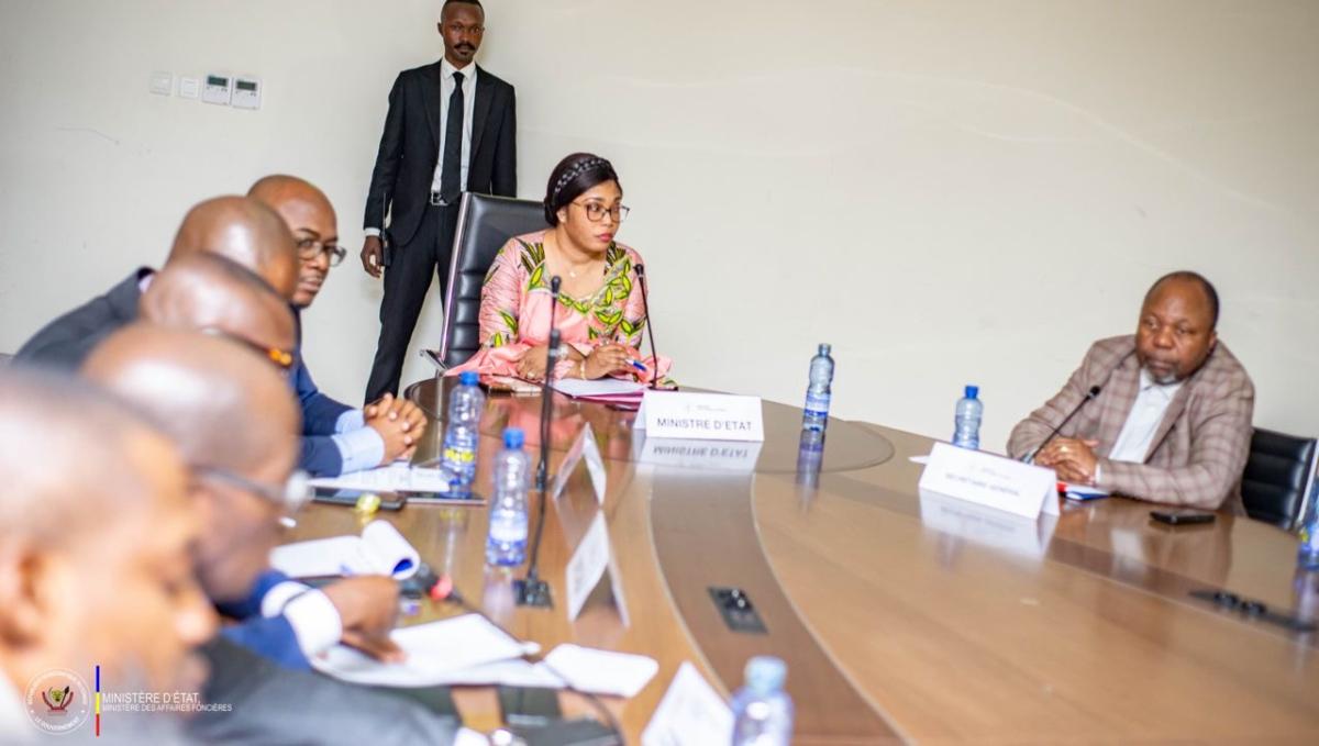 La ministre des Affaires foncières Acacia Bandubola Mbongo a tenu une réunion de prise de contact avec quelques conservateurs des titres immobiliers et chefs de division du Grand Katanga ainsi que les responsables des écoles nationales de cadastre, le mardi 16 juillet 2024 dans son cabinet de travail.