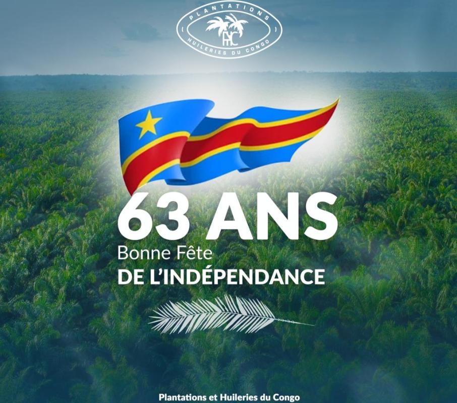 À l’occasion du 63e anniversaire de l'indépendance de la République démocratique du Congo, les Plantations et Huileries du Congo présentent leurs vœux de prospérité et de succès à tout le peuple congolais.