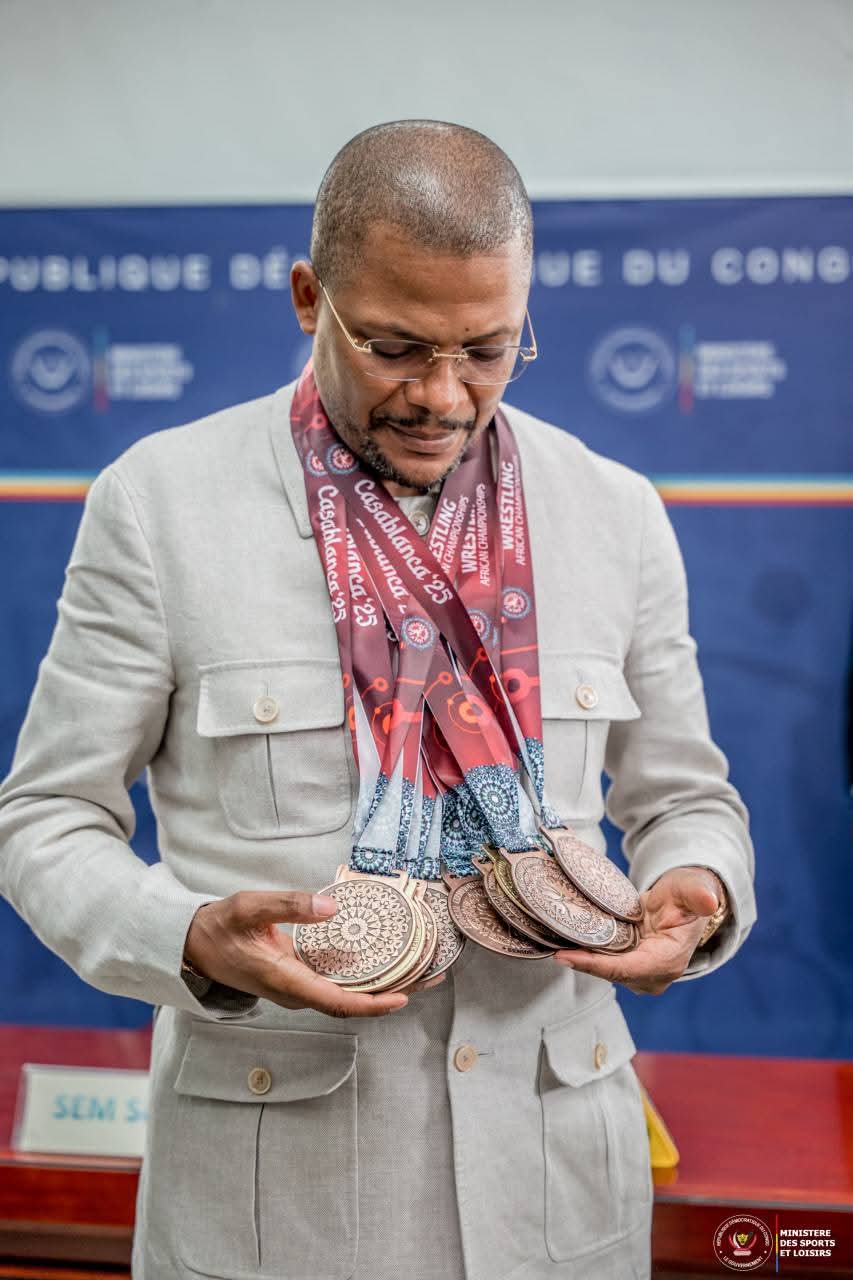 Les Léopards de lutte de la RDC ont présenté 17 médailles (4 d'or, 2 d'argent et 11 de bronze) ce jeudi 8 mai 2025 au ministre des Sports et Loisirs, Didier Budimbu, après leur participation au Championnat d’Afrique de Luttes Associées 2025, qui s'est déroulé à Casablanca, au Maroc.