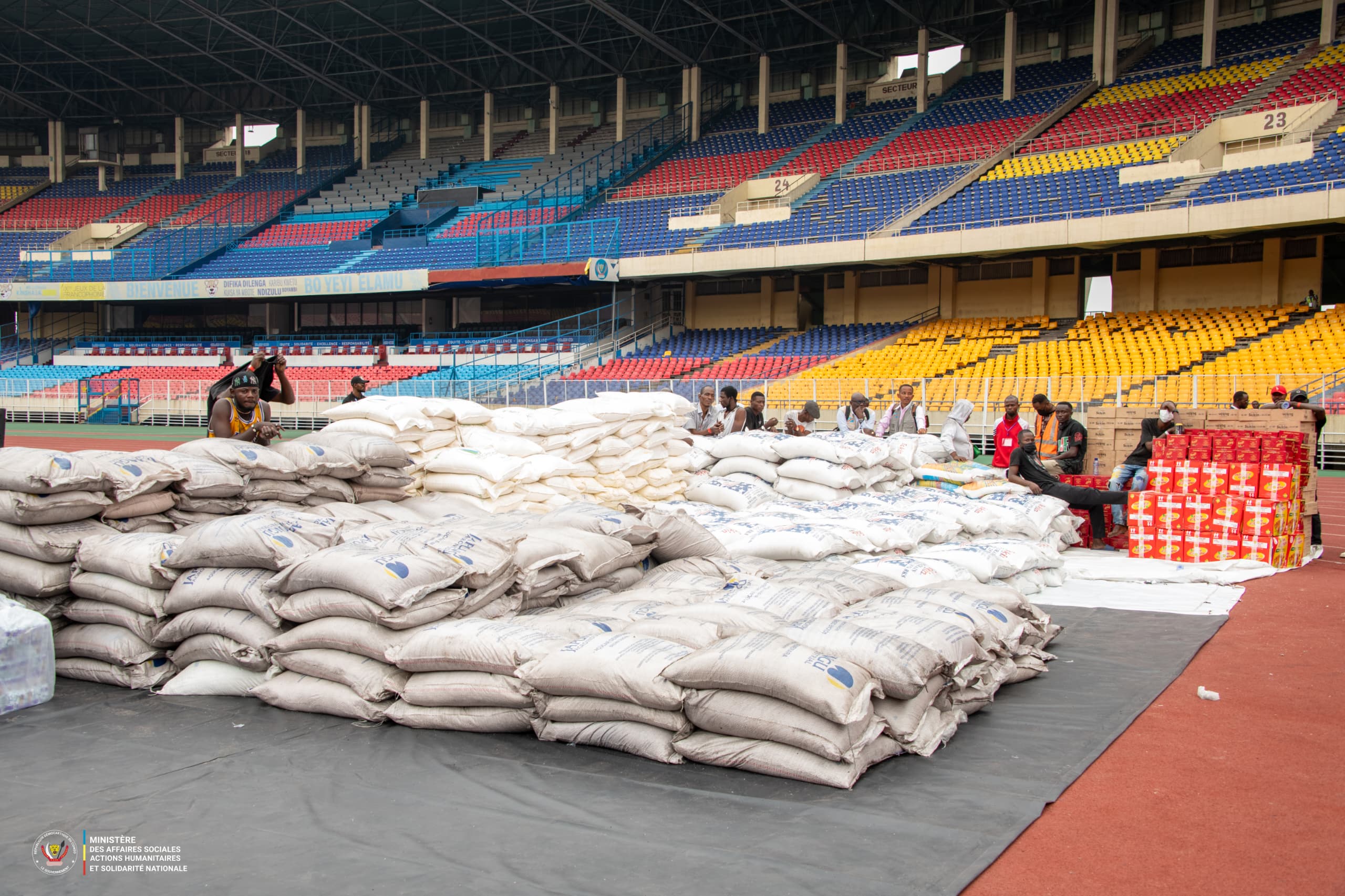 Le dimanche 29 juin 2025, des vivres, des non-vivres et d'autres biens de première nécessité ont été distribués aux victimes hébergées au stade des Martyrs de la Pentecôte.